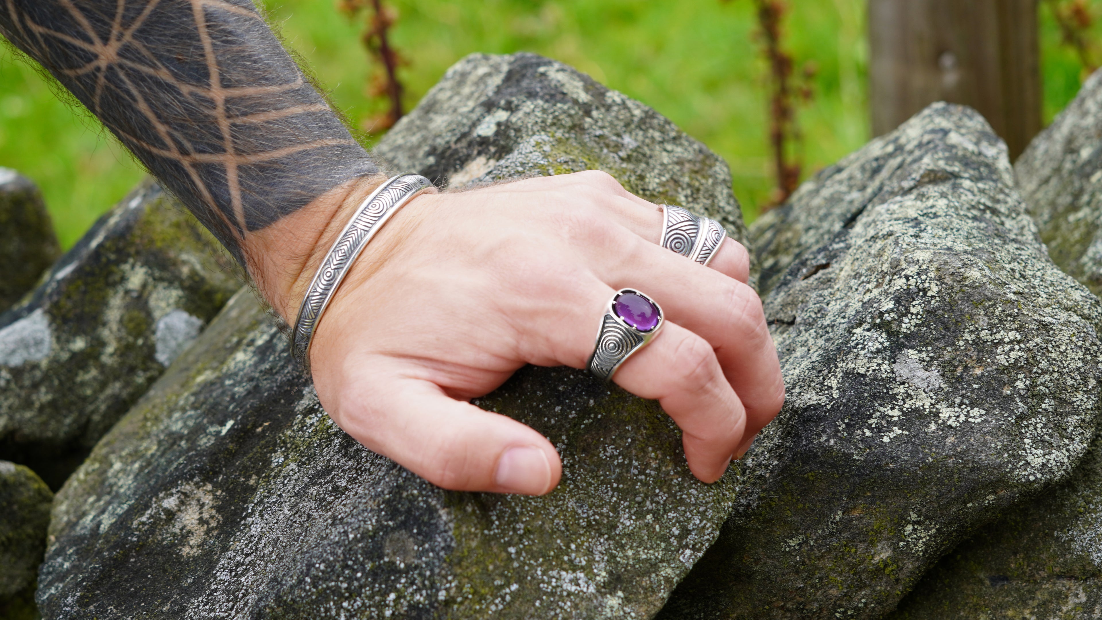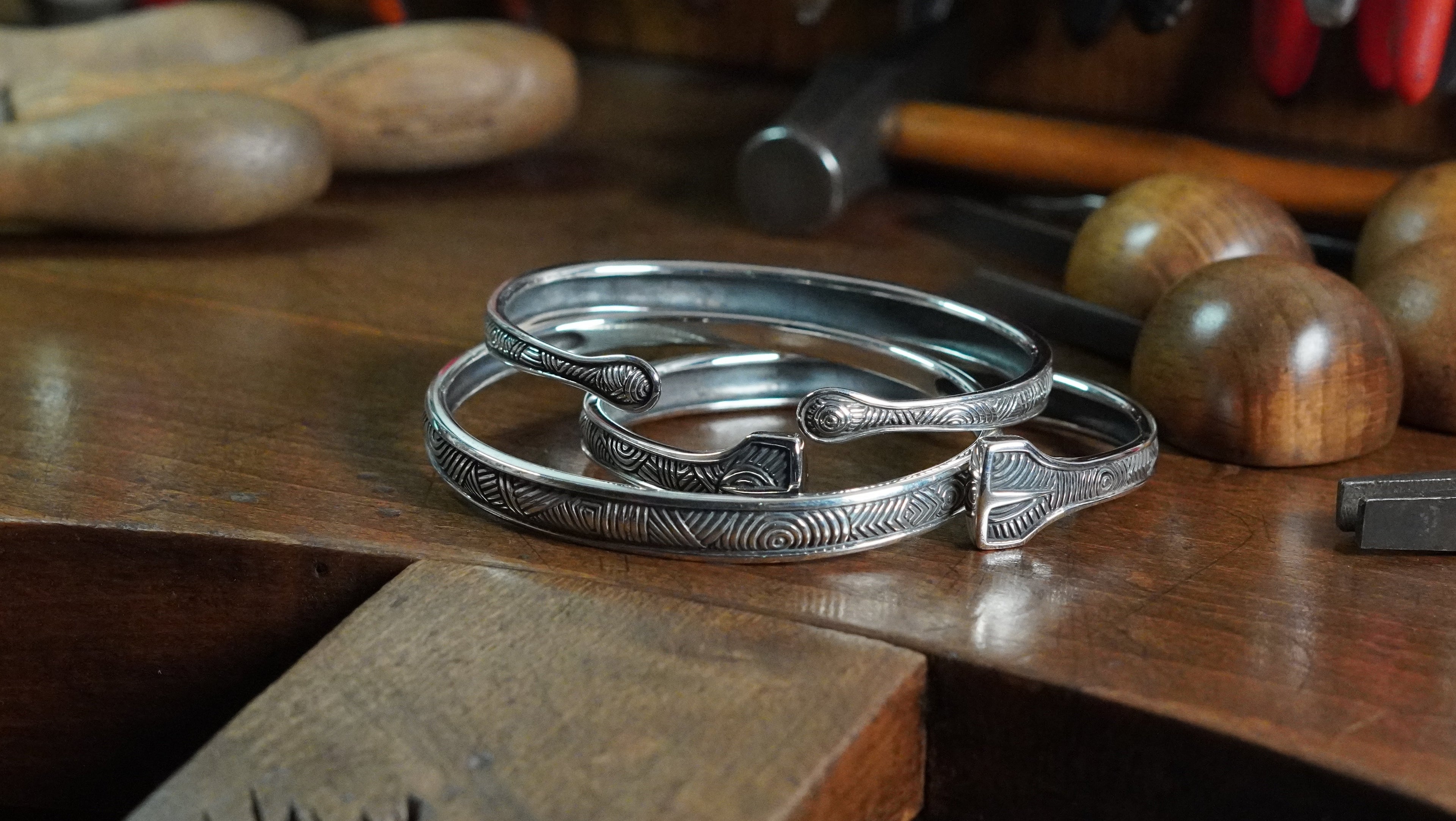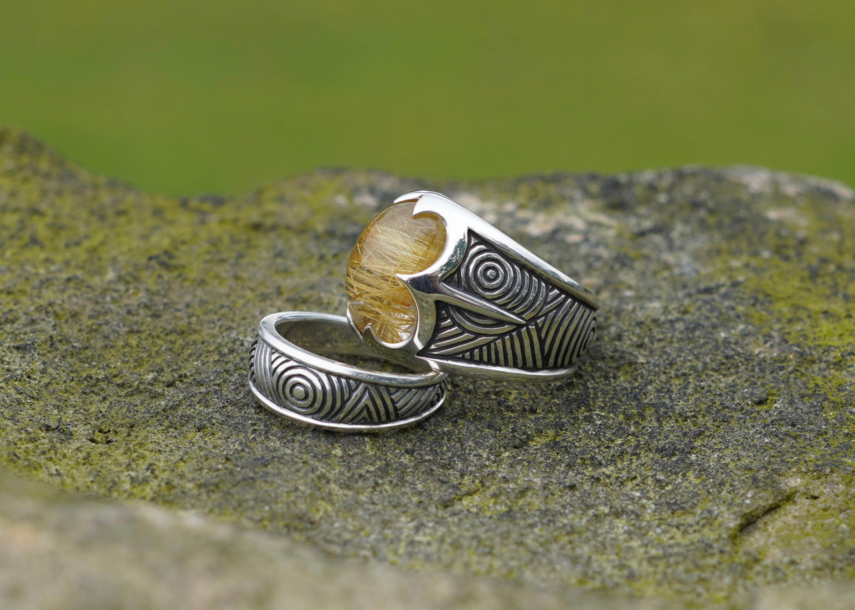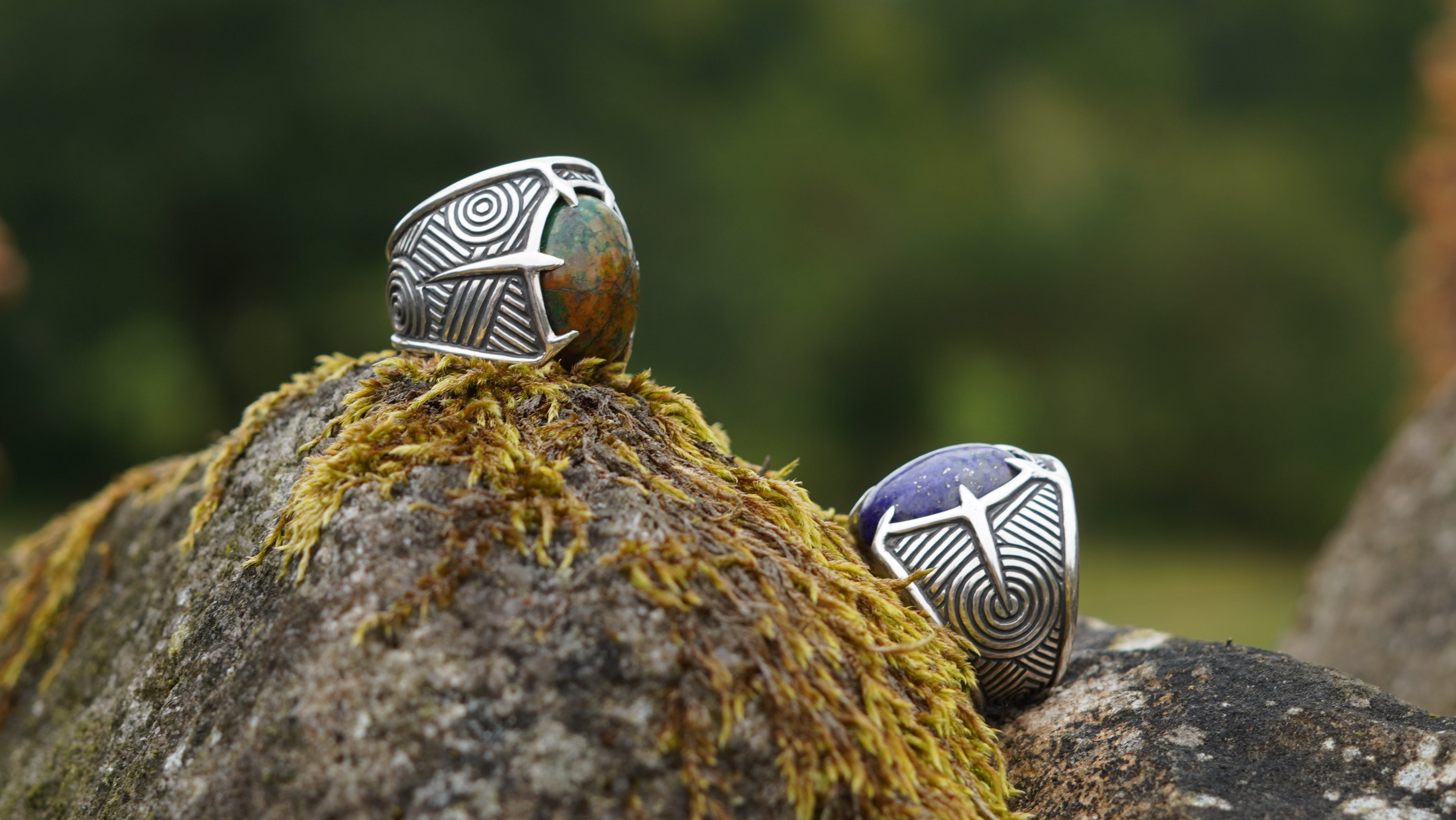 Fable Ore is our signature style. A simple series of lines and geometric shapes that create an interwoven feeling of depth, evoking runic symbols and the spirit of patterns from ancient cultures. These markings are inscribed over flowing shapes with smooth contours and framed by borders that are reminiscent of Celtic panels and heraldic armour.